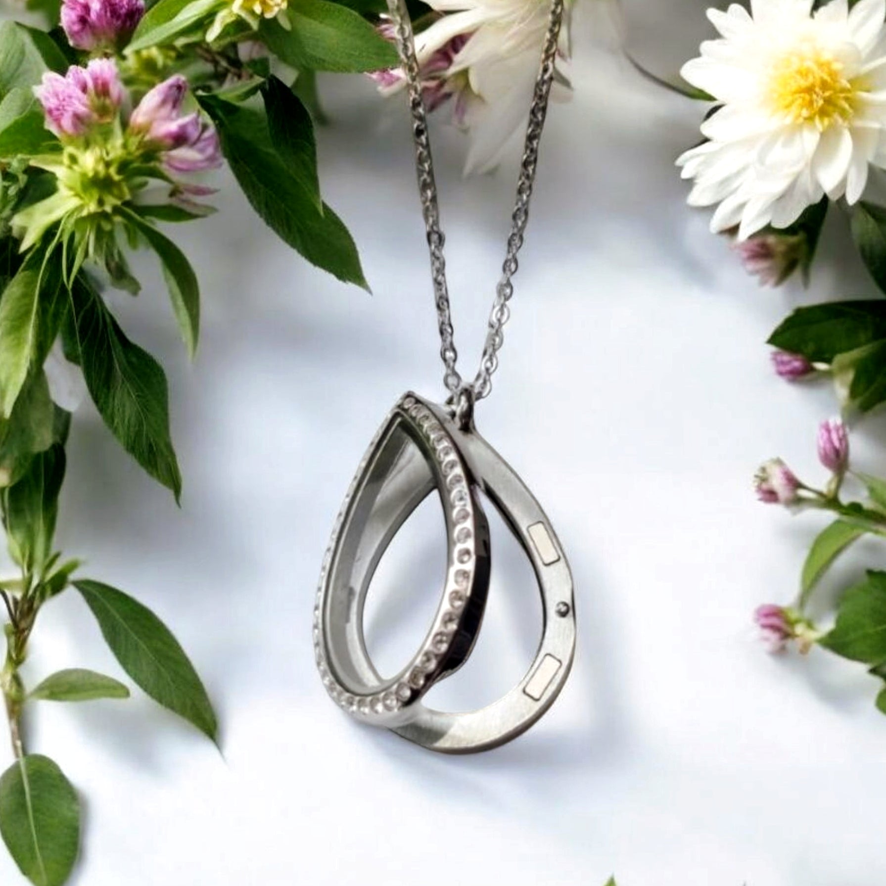 Here is the magnificent " Inoubliable " chain, adjustable with an extension adorned with an oval-shaped charm, in hypoallergenic stainless steel money. It is decorated with a beautiful souvenir medallion in the shape of a droplet. It is made of glass & paved with pretty zircons. Measures 27 x 42mm.