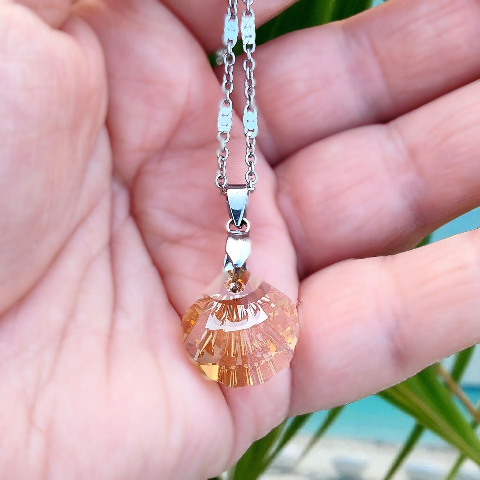 Voici le superbe collier "Seashell", 18 pouces, ajustable avec une rallonge, en acier inoxydable hypoallergénique. Il est orné d'un magnifique pendentif de cristal Swarovski, en forme de coquillage, qui brille lorsqu'il capte la lumière.✨ Un bijou à la fois élégant et intemporel, inspiré de la mer et les tropiques.🐚🌊