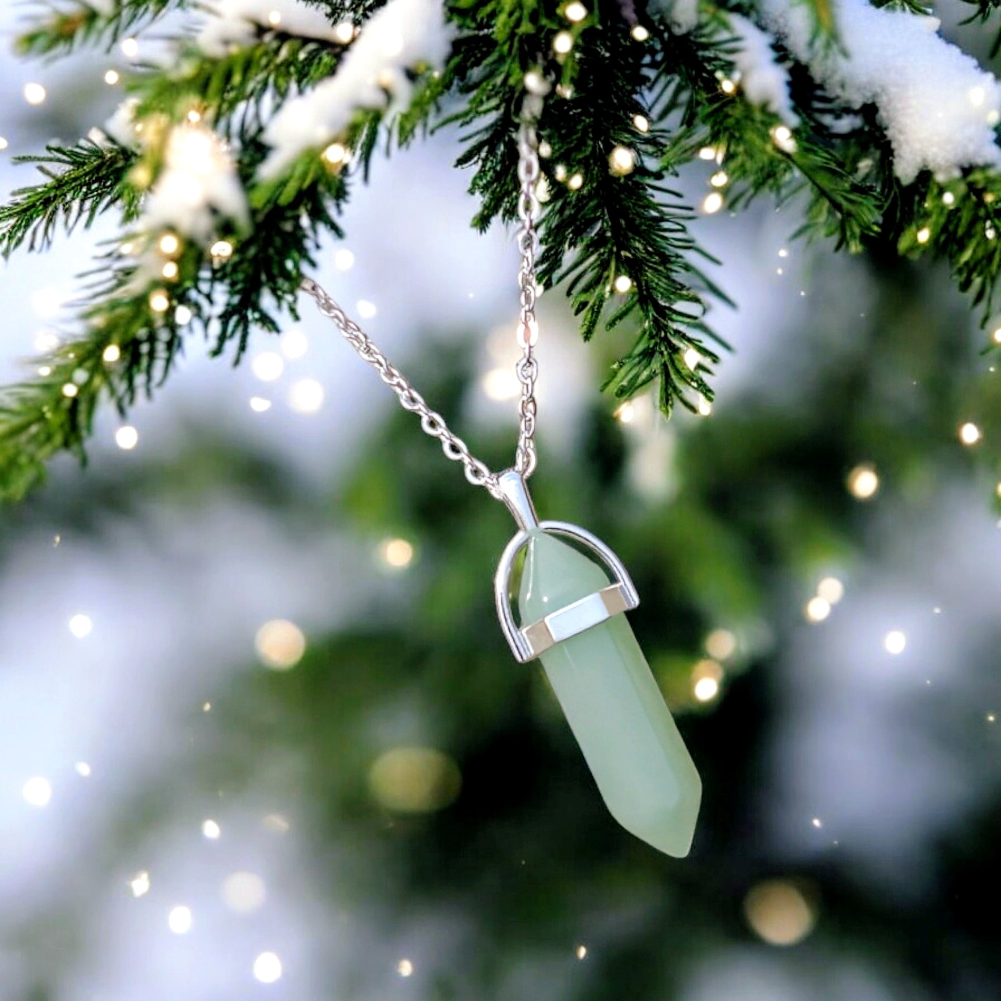 Voici la jolie chaîne "Apaisante", ajustable avec une rallonge ornée d'une breloque ovale en acier inoxydable hypoallergénique. Elle est décorée d'un beau pendentif en pointe hexagonale de pierre naturelle semi-précieuse, d'aventurine verte, 1.5 pouces.