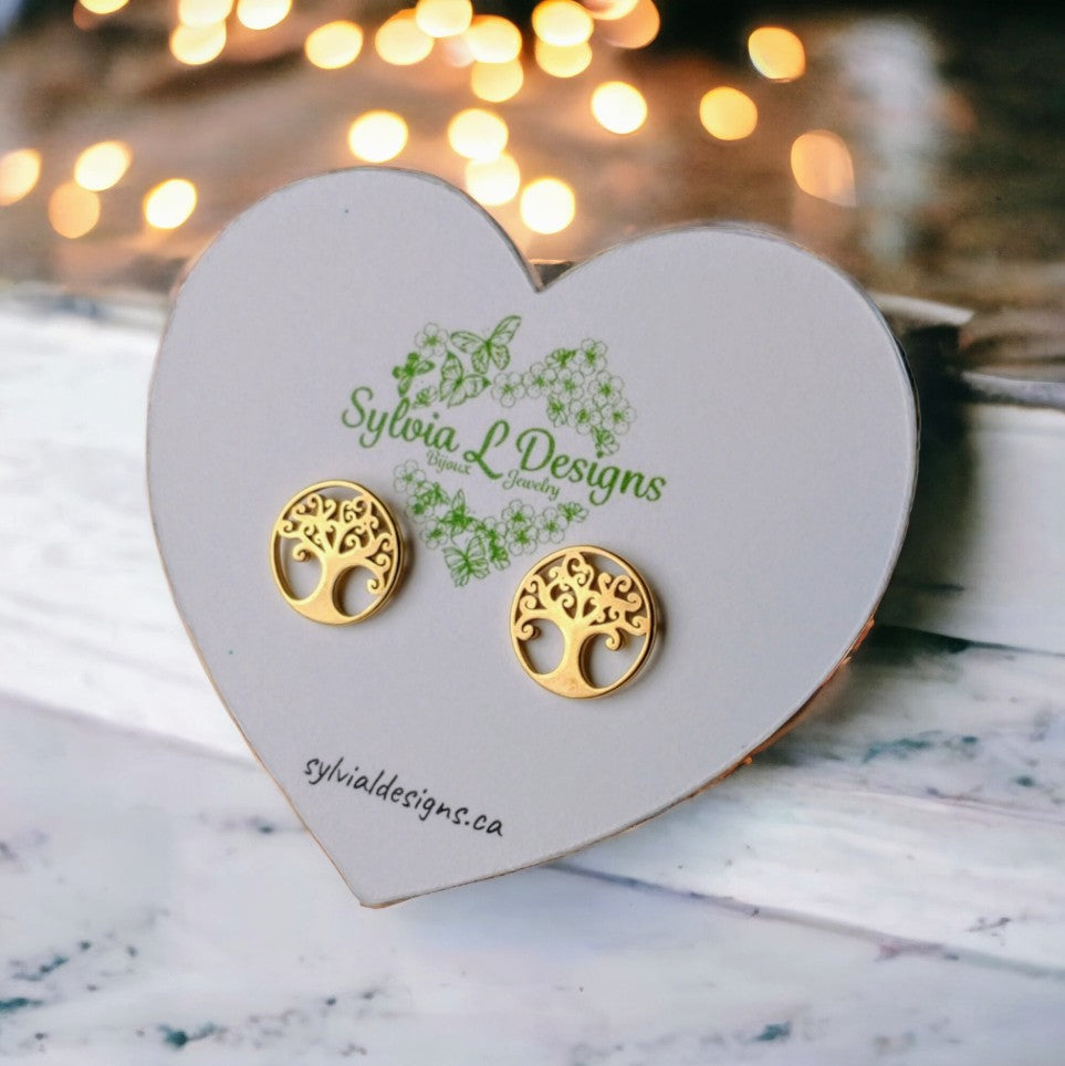 Découvrez les élégantes boucles d’oreilles « Arbre de Vie », d’un diamètre de 22 mm, entièrement conçues en acier inoxydable hypoallergénique pour allier durabilité, confort et raffinement.