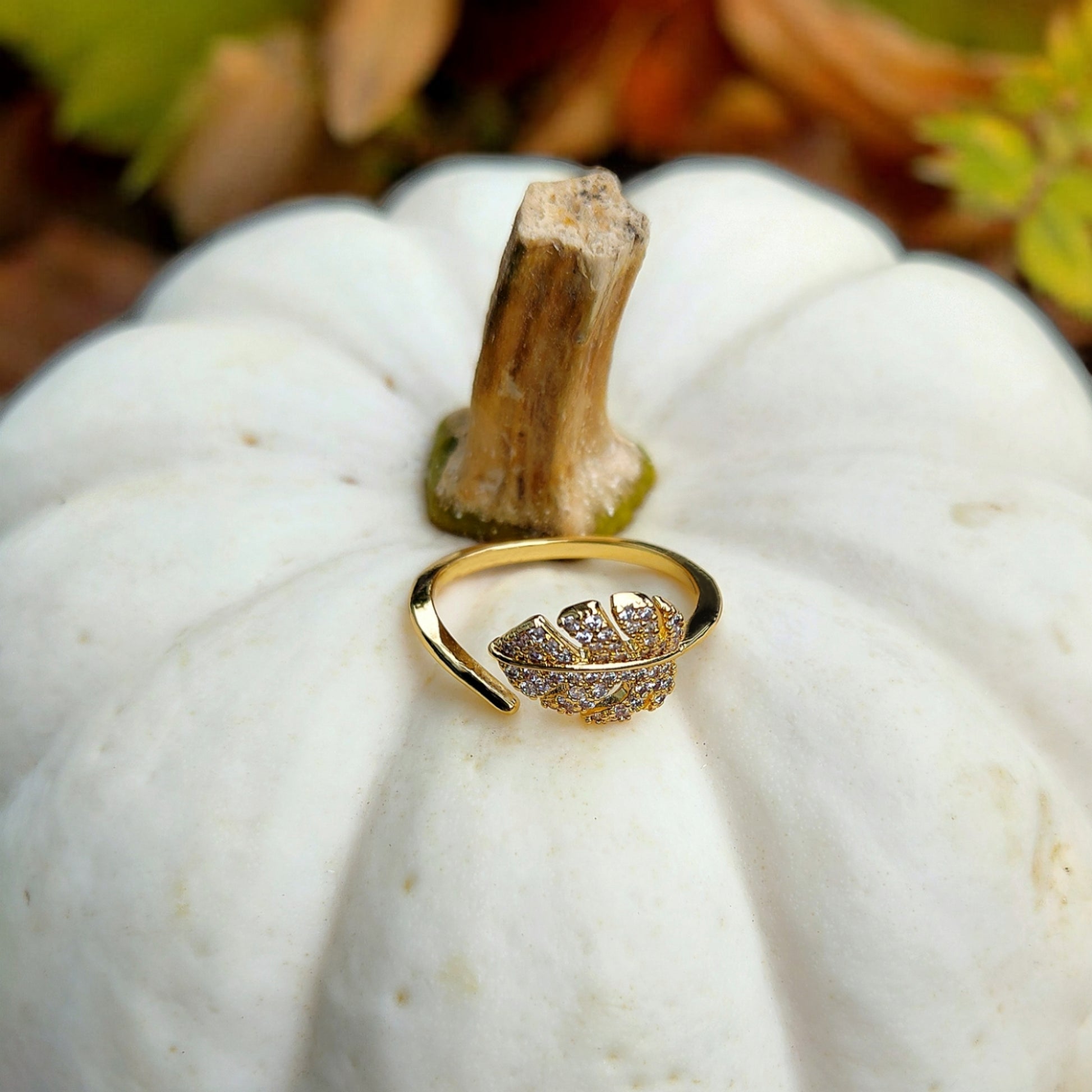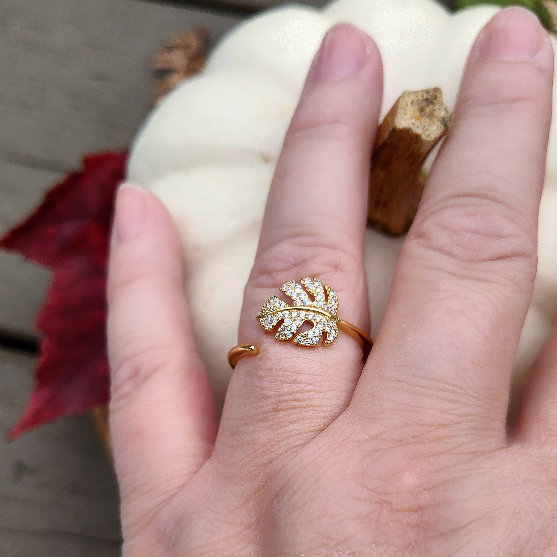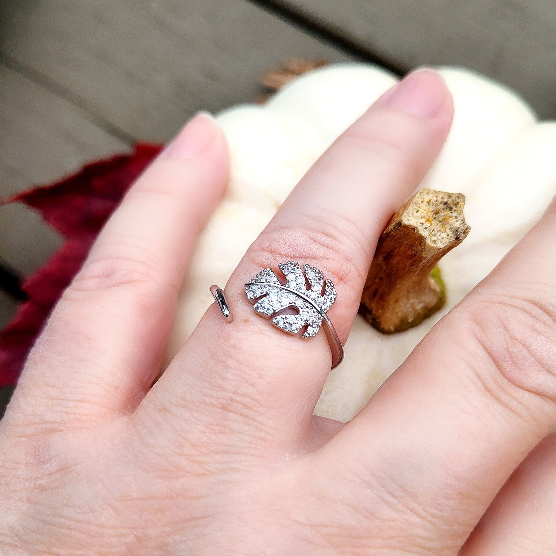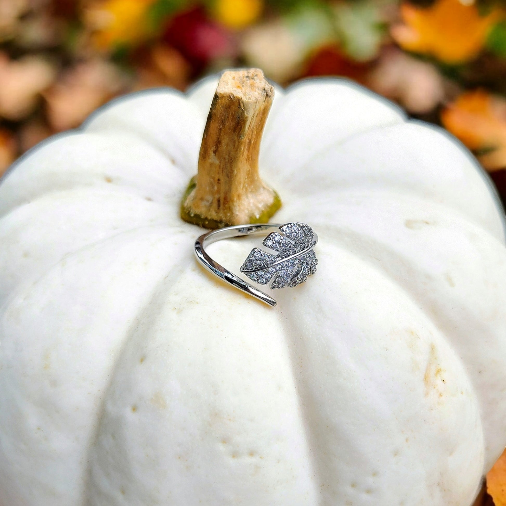 Voici la jolie bague "Botanique", faite de zircon transparent et d'acier inoxydable hypoallergénique.