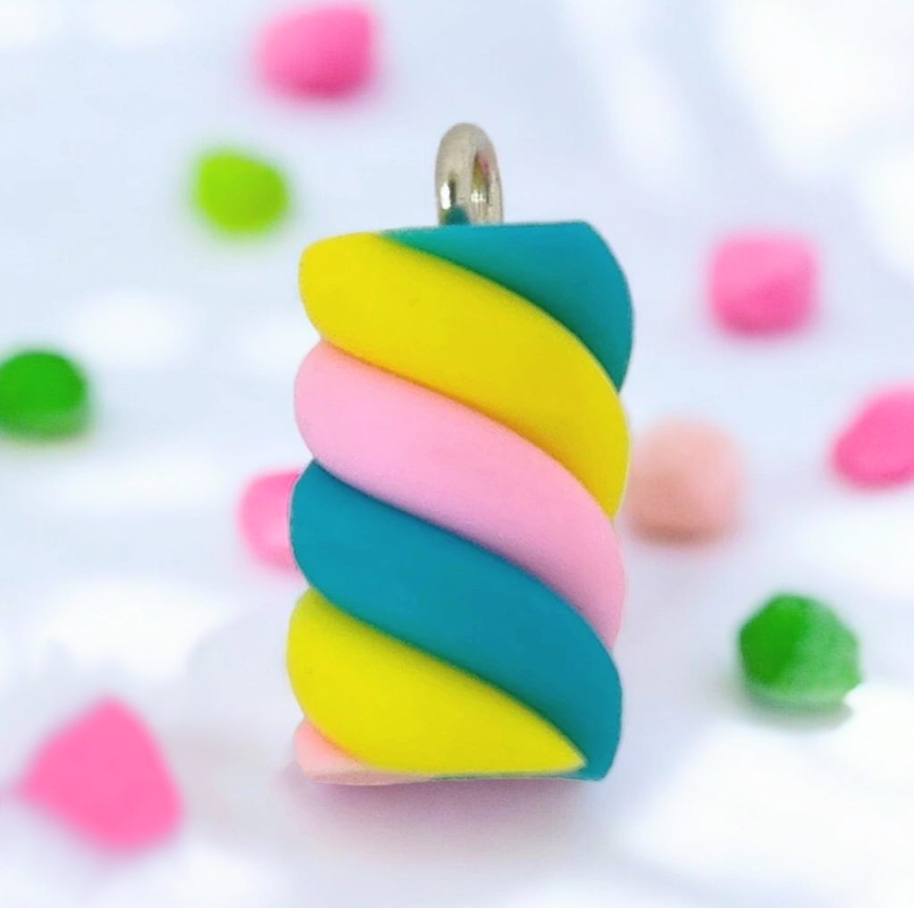 Jolie breloque "Réglisse" 10 x 20 mm, jaune/rose/turquoise, en argile polymère.