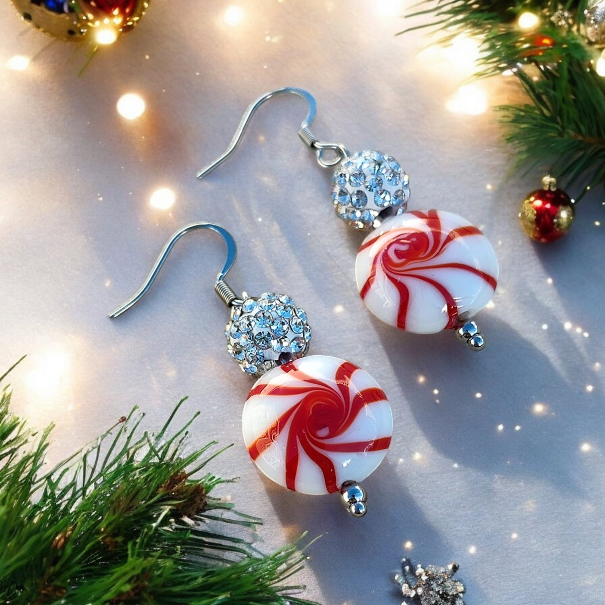 Voici les jolies boucles d'oreilles festives "Candy", composées de crochets en acier inoxydable hypoallergénique. Elles sont décorées d'une perle de strass 8 mm et d'un pendant en céramique.