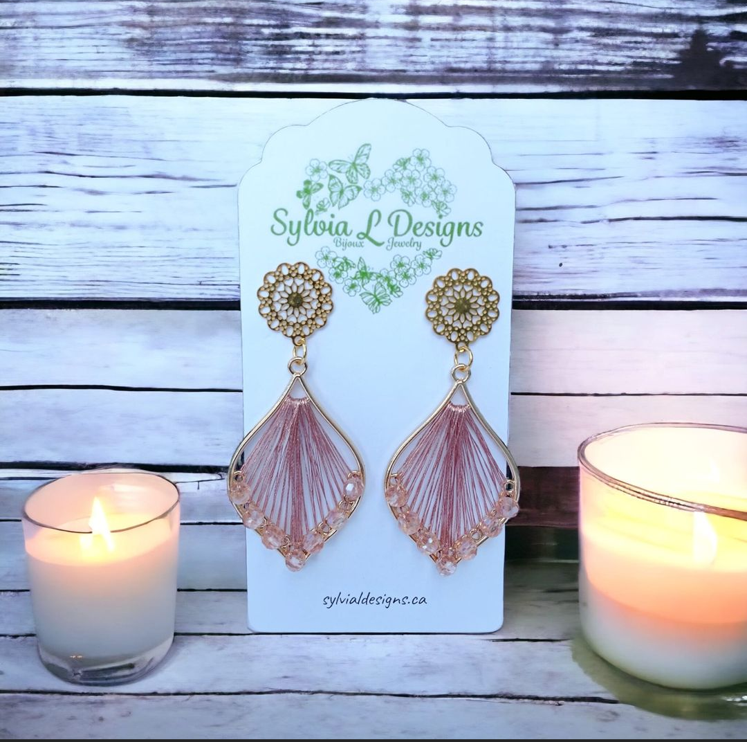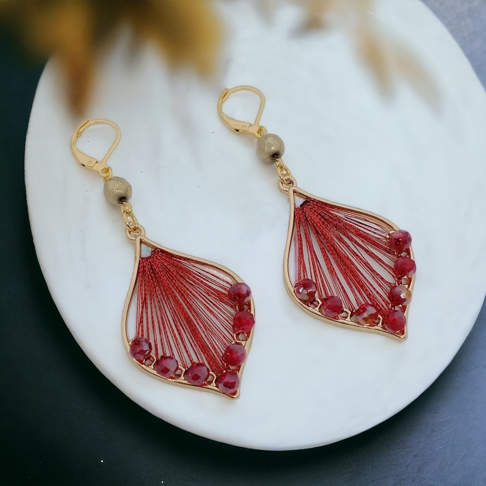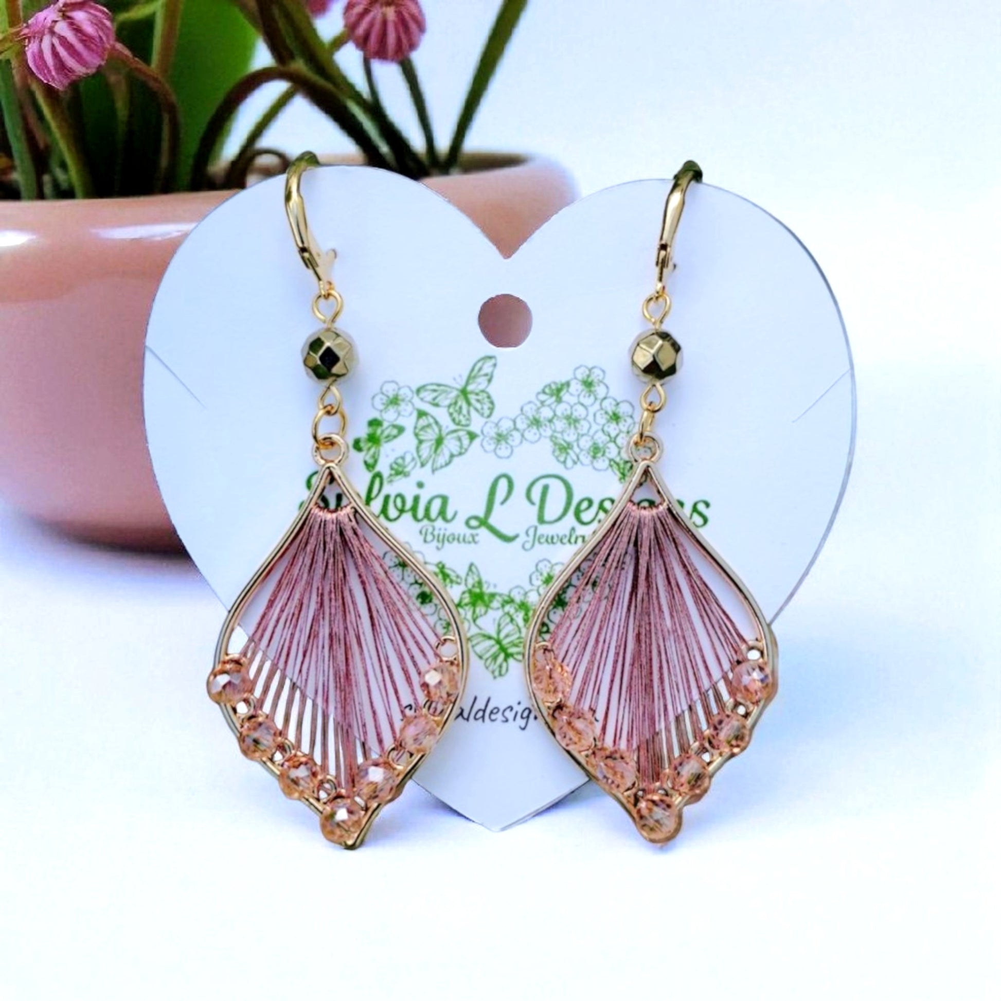 Élégantes et féminines, ces boucles d’oreilles en forme de goutte (42 x 26 mm) sont tissées et perlées à la main.