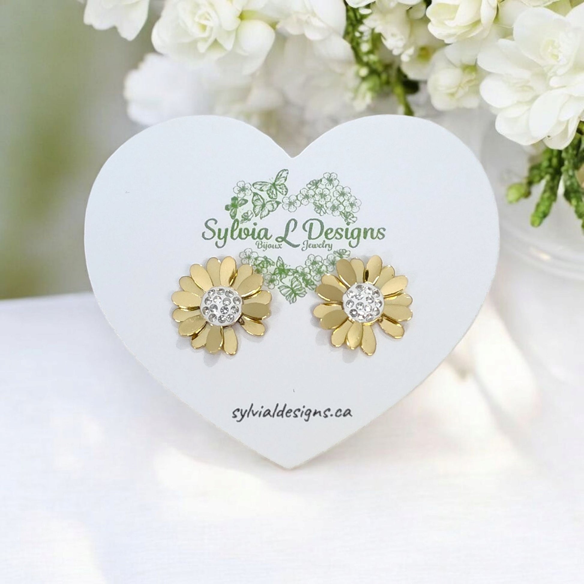 Laissez-vous séduire par nos jolies boucles d'oreilles "Miranda", en forme de fleur de tournesol 13 mm. Elles sont réalisées en acier inoxydable 316L hypoallergénique, et un zircon étincelant central.