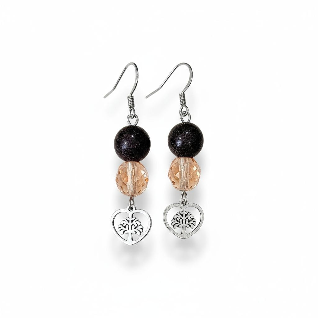 Découvrez les élégantes boucles d’oreilles « Nature », confectionnées avec des crochets en acier inoxydable hypoallergénique. Elles sont sublimées par une pierre de jaspe sang du dragon de 8 mm, verte aux nuances bourgogne, ainsi que par une perle en verre de cristal rosé. Une délicate breloque arbre de vie en forme de cœur, également en acier inoxydable, vient parfaire leur design.