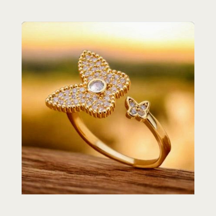 Voici la jolie bague "Papillon", faite de zircon transparent et d'acier inoxydable hypoallergénique.
