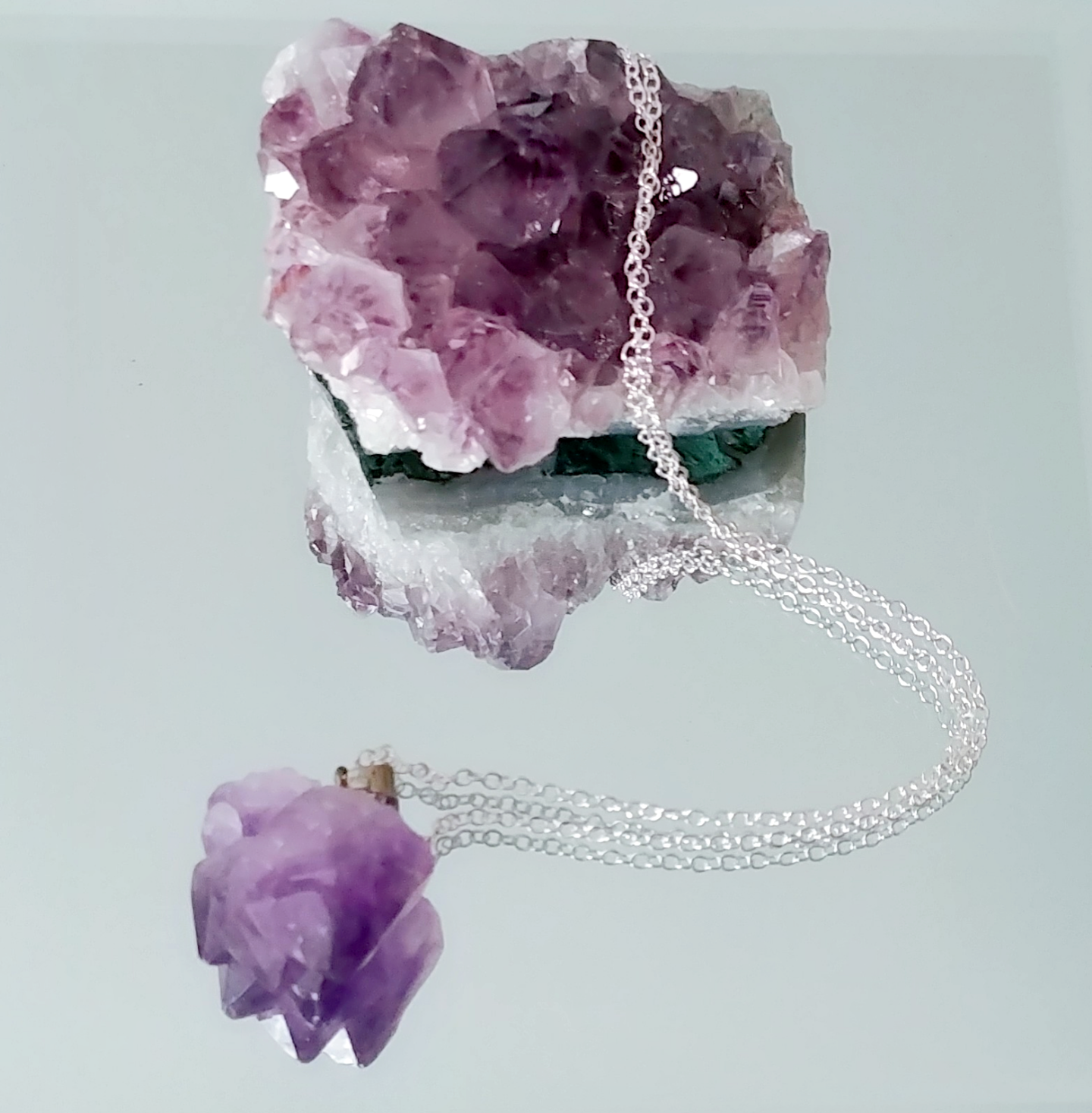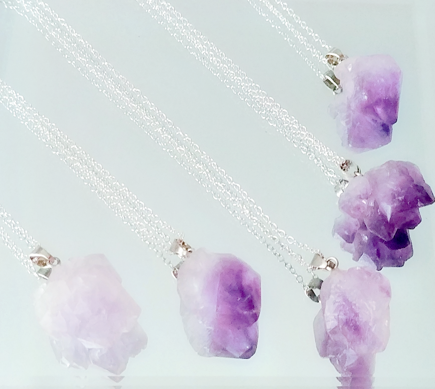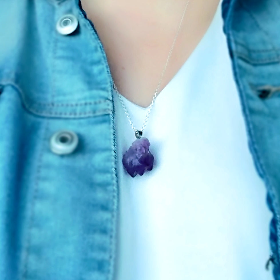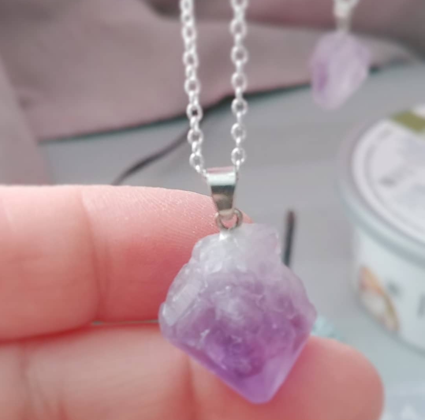 Voici la délicate chaîne "Bien-être", en acier inoxydable hypoallergénique, ajustable avec une rallonge ornée d'une breloque ovale en acier inoxydable. Elle est accompagnée d'un magnifique pendentif en pierre d'améthyste, mesurant entre 18 et 28 mm. Ils sont choisis aléatoirement, la couleur et la grandeur diffèrent, ils sont tous beaux et uniques.